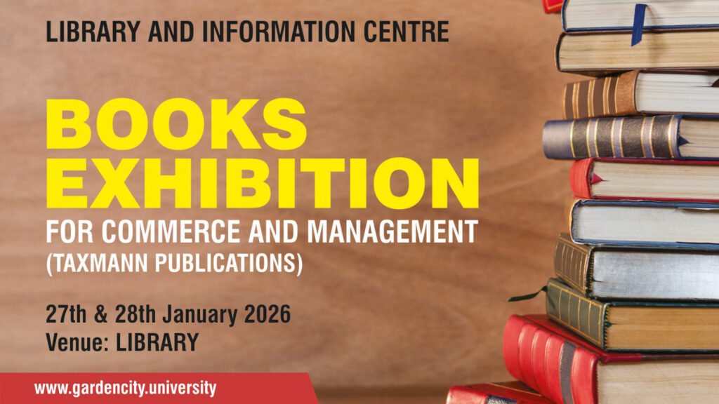 Books Exhibition on Commerce and Management (Taxxman Publications). The Library and Information Centre, Garden City University, organized a Books Exhibition-cum-Display in association with Taxmann Publications on 27th and 28th January 2026 in the library premises. A wide range of books related to Commerce, Management, Accounting, Taxation, and Law were displayed for the benefit of students […]