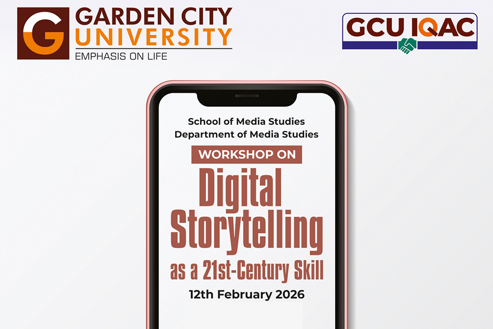 The School of Media Studies at Garden City University organized a Skill Development Workshop titled “Digital Storytelling as a 21st-Century Skill” on 12 February 2026 at Room No. 161 – Mini Theatre. The workshop aimed to introduce students to storytelling techniques essential for contemporary digital platforms.