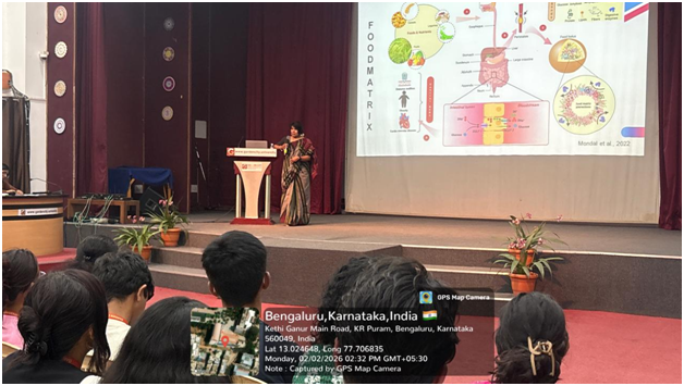 The Department of Life Sciences successfully organized a guest lecture titled “Next Gen Nutrition: Bio-Based Innovation for Sustainable Food and Health” on [date], aimed at enriching students’ understanding of emerging trends in nutrition and health sciences. The session was delivered by Dr. Veda, Senior Scientist, Biochemistry, ICAR–Indian Agricultural Research Institute (IARI), and Adjunct Professor, Food Science & Human Nutrition. Dr. Veda shared valuable insights into bio-based innovations, functional foods, and sustainable nutritional strategies addressing global health challenges. The lecture bridged fundamental life science concepts with real-world research applications and translational outcomes. Students gained exposure to cutting-edge research initiatives and advancements in nutraceuticals and sustainable food systems. The interactive nature of the session encouraged active student participation and thoughtful discussions. The event also highlighted academic pathways and career opportunities in nutrition, food science, and health biotechnology. Overall, the programme was highly informative and inspiring, leaving students motivated to pursue innovation-driven research for sustainable health solutions.