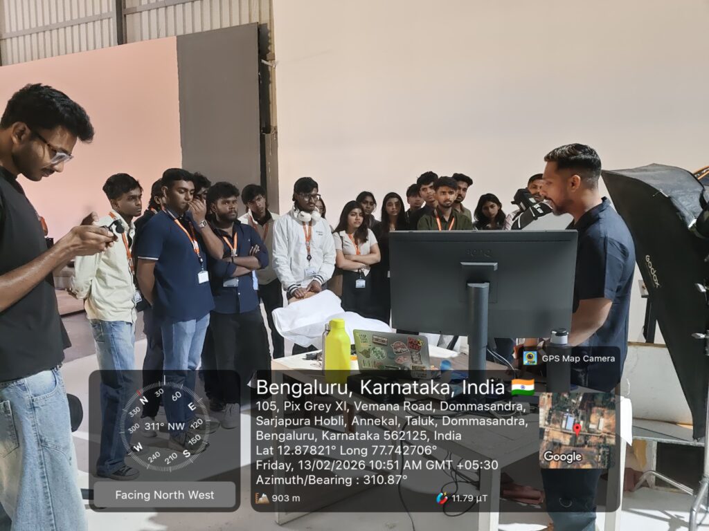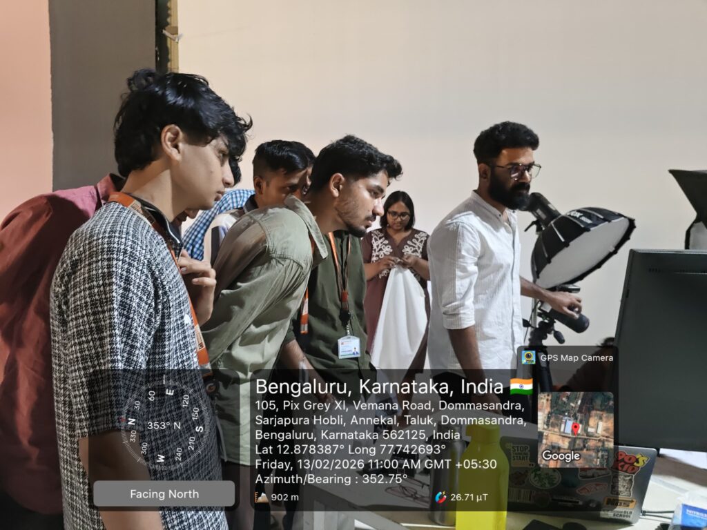 The School of Media Studies, Garden City University, organized an Industrial Visit to Pixemo Studio on Friday, 13th February 2026, as part of its experiential learning initiative. The visit aimed to provide students with practical exposure to professional product photography and studio production practices.