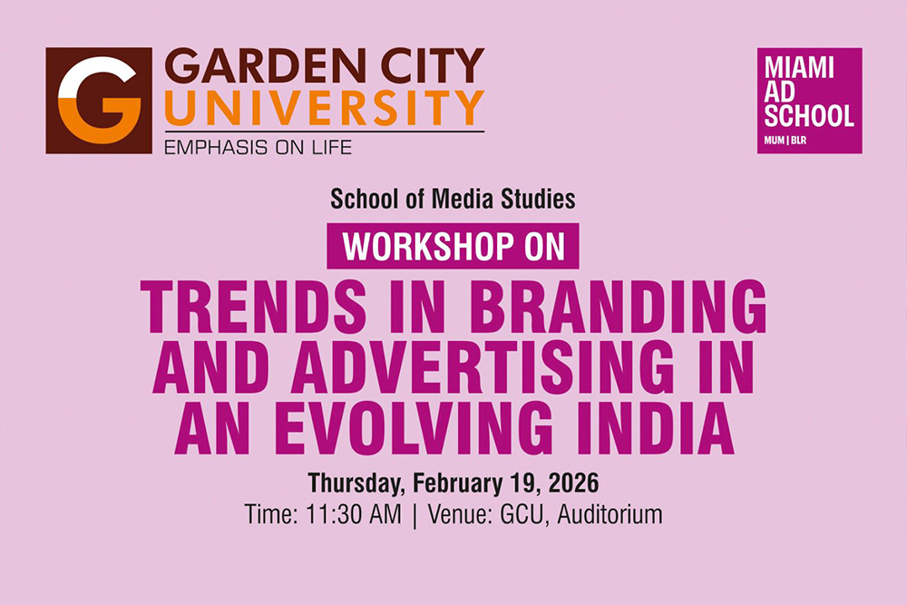 The School of Media Studies at Garden City University, in collaboration with the School of Commerce and Management, organized an engaging and interactive session titled “Trends in Branding and Advertising in an Evolving India” at the GCU Auditorium.