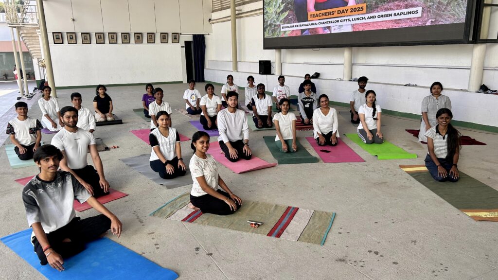The Department of Yoga organized a yoga session titled ‘Mind–Body Interface Through Yoga’ with the objective of promoting holistic well-being among the Samsung Seed Lab team. The session focused on fostering mental clarity, emotional balance, and physical relaxation through guided yogic practices. Participants who were 24 in number were introduced to basic asanas, breathing techniques, and mindfulness exercises designed to enhance concentration, reduce stress, and improve overall productivity. The serene ambience and structured guidance encouraged active participation and helped students experience the integrative benefits of yoga on both mind and body. The programme was well received and created awareness about the relevance of yoga in maintaining balance amidst academic and personal pressures.