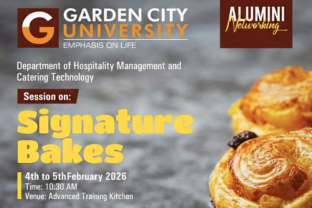 The Department of Hospitality Management and Catering Technology, Garden City University, successfully organized “Signature Bakes – Master Class on Bakery and Confectionery” on 4th and 5th February 2026 at the Bakery and Green House. The two-day workshop was designed to provide students with intensive hands-on training in classic and contemporary bakery and confectionery preparations, offering them an immersive and industry-oriented learning experience.